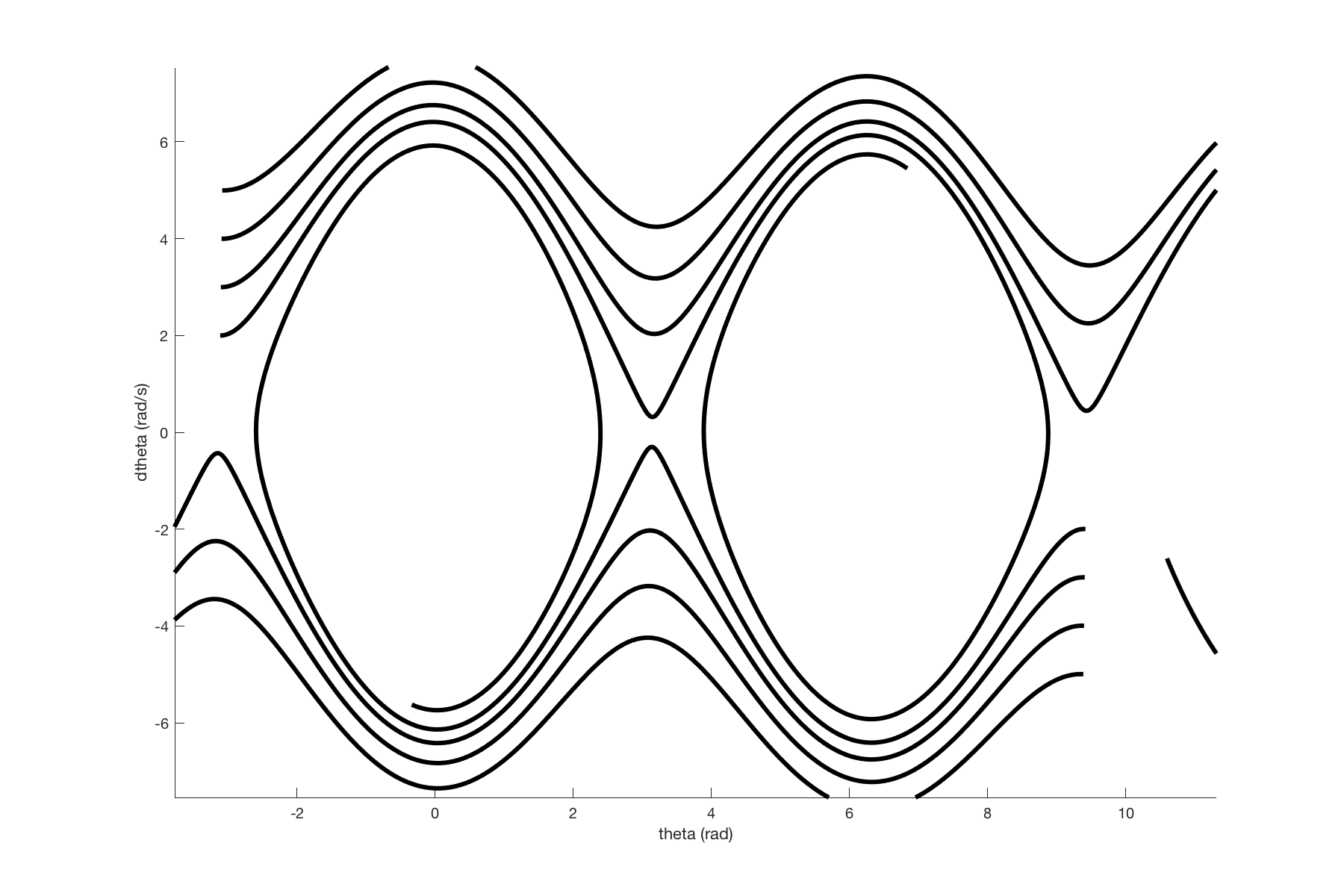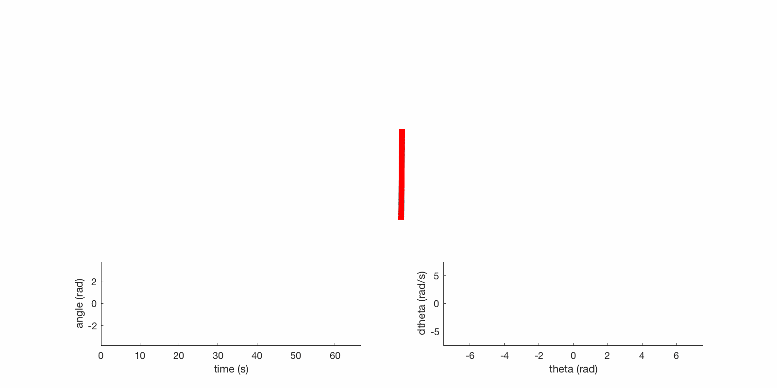 Setting up this controller helped me understand how state space works a little better. Interestingly, euclidian distance in state space often is not useful. As an example, multiple trajectories of the pendulum may be right next to each other in state space, but it may be impossible to get from one to the other.